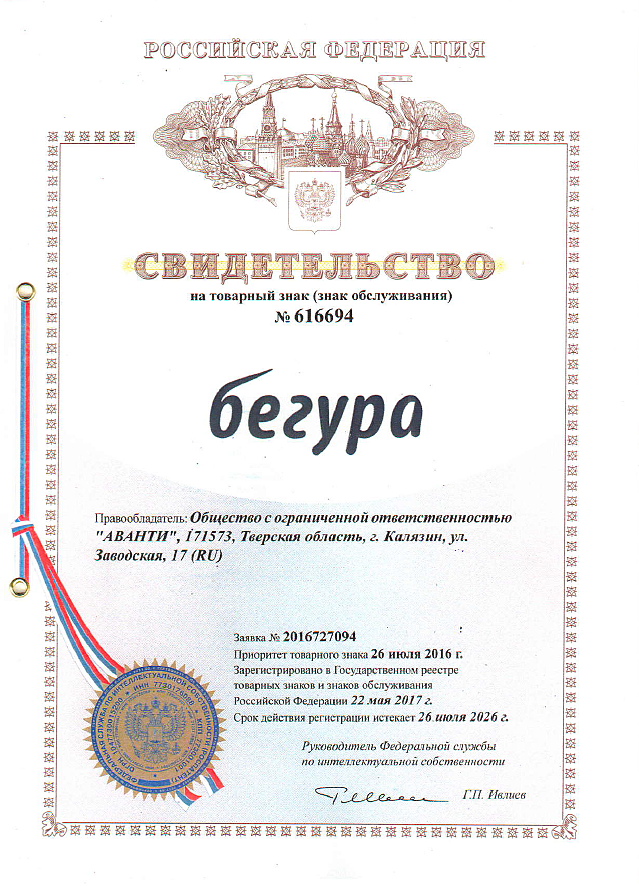 Уважаемые клиенты, летом 2017 года Наша обувная фабрика АВАНТАЖ (прежнее название) провела ре-брендинг. Мы зарегистрировали новую Торговую марку "БЕГУРА", а также мы сменили логотип фабрики и провели регистрацию нового логотипа. Эти изменения позволят нам выйти на новый этап работы, сохранив прежние традиции производства продукции. Наша компания постоянно развивается, к нам обращаются все новые и новые клиенты, производственные мощности необходимо увеличивать, поэтому компания "БЕГУРА" в 2017 году произвела закупку современного нового оборудования. Что качественно повлияло на изготавливаемую продукцию и объемы производства.Персонал компании постоянно улучшает производственные навыки, проходит специализированные тренинги и обучение, для работы на высокотехнологичном оборудовании! Мы гарантируем - что заказы всегда будут выполнены качественно и на все 100%. Спасибо что Вы с нами!